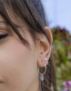 If you´re looking for something different to the classic hoop, choose hoops with irregular shapes, such as this star-shaped model; or chain link hoops, available in differents lengths. This dual-hoop earring combines the simplicity of the geometric piece, the movement of the interlinked hoop and the formality of a classic piece. A must.