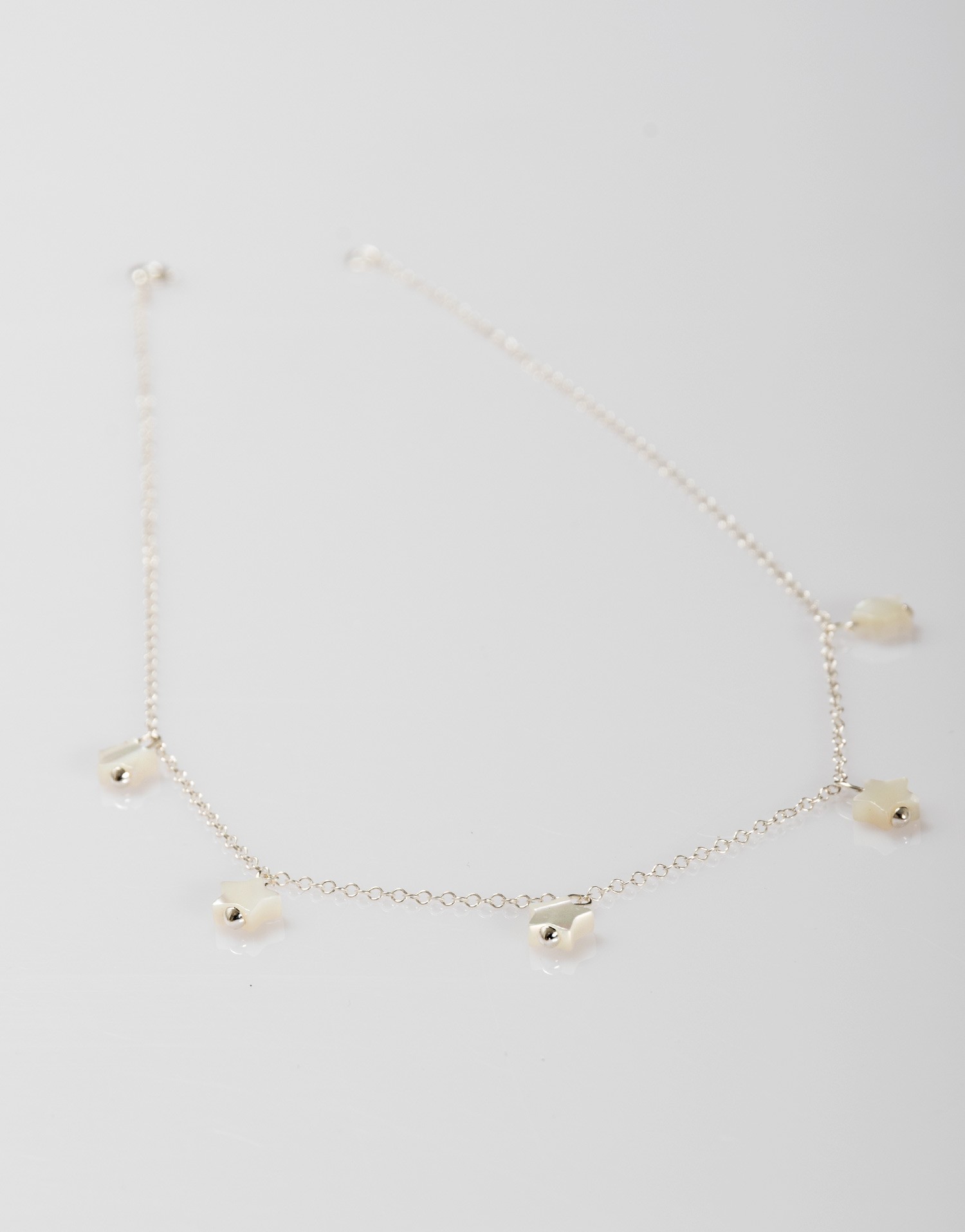 Collar de plata 925. Collar de cadena finíta con colgantes de estrellitas de nácar. Cierre de mosquetón. Largo 40 cm.