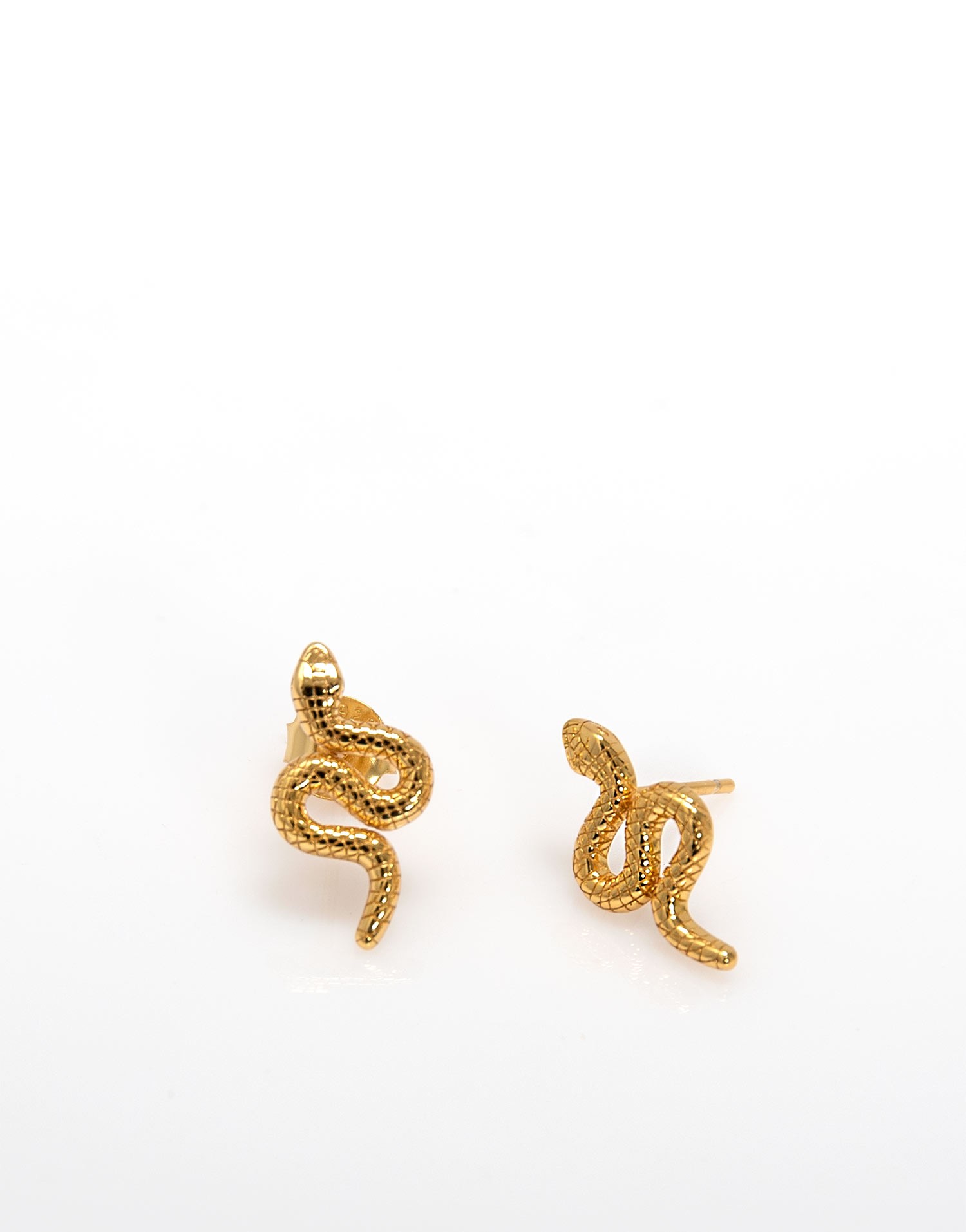 Pendiente de tuerca con diseño de serpiente enroscada. De plata labrada, imitando la piel de la serpiente. Mide 18mm de largo por 9mm en la zona más ancha y el grosor del cuerpo son 2 mm.