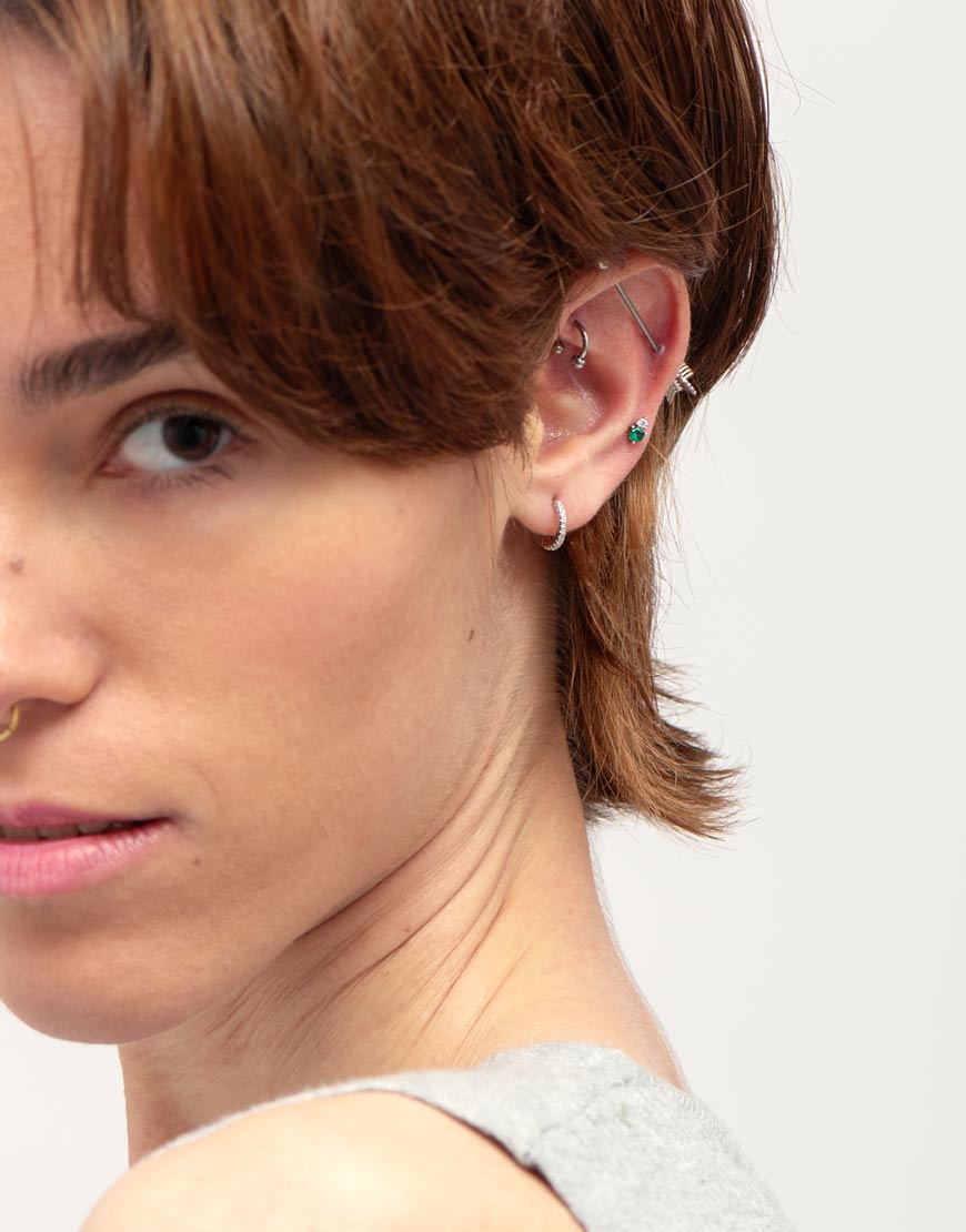 Su tamaño pequeño lo convierte en una opción perfecta para quienes buscan un aro ajustado que se adapte al lóbulo o al cartílago, incluyendo el hélix según la anatomía de la oreja. Gracias a su proporción discreta, funciona especialmente bien como pendiente suelto en combinaciones con varios agujeros.