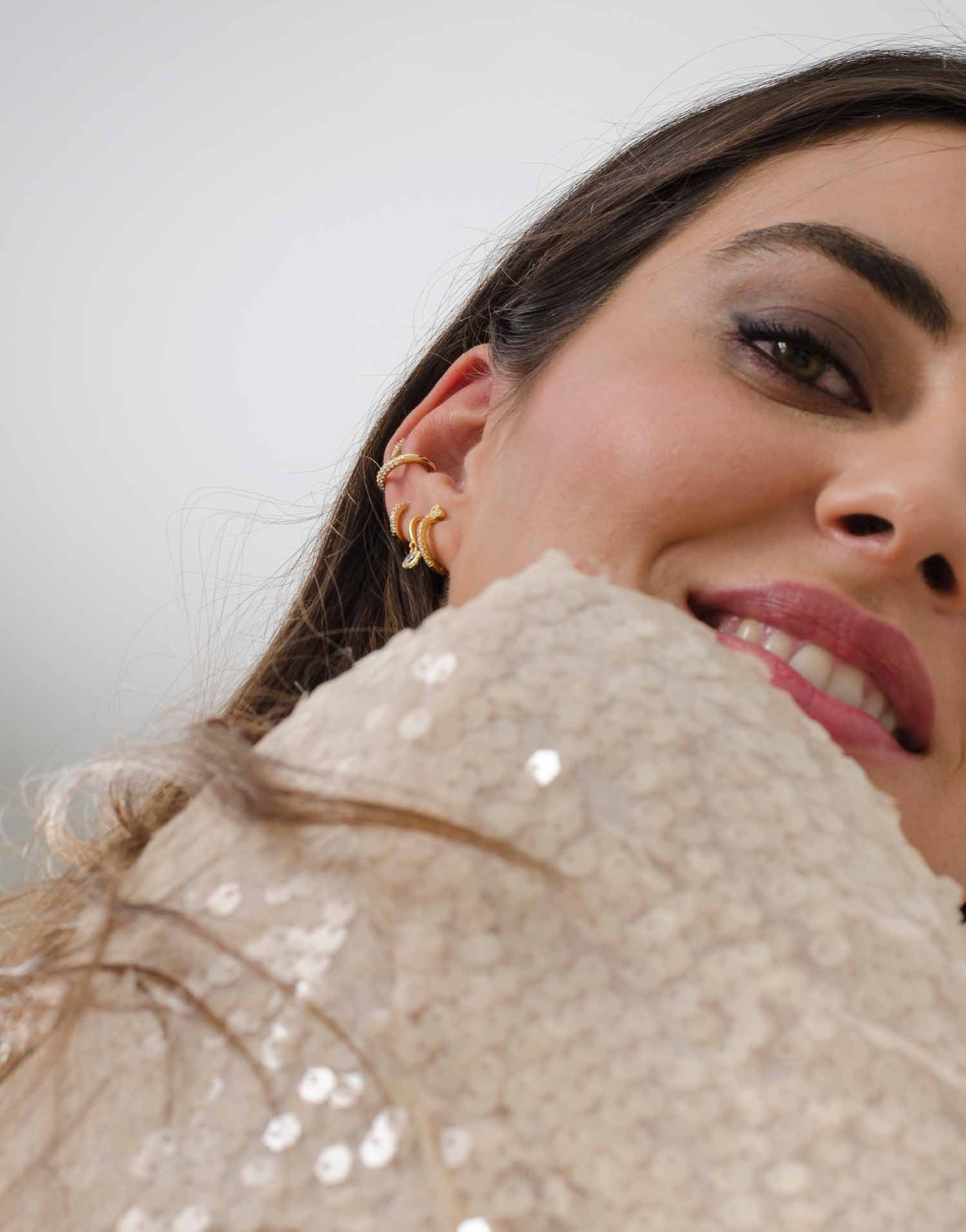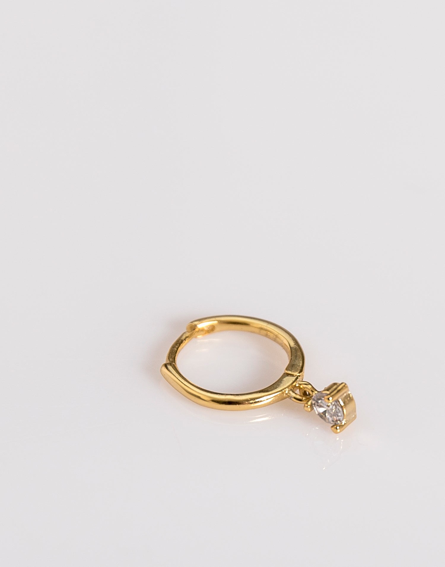 Este aro pequeño de plata 925 combina la sencillez de un diseño liso con el brillo delicado de una circonita colgante. Una pieza elegante y equilibrada que aporta luz sin resultar recargada.