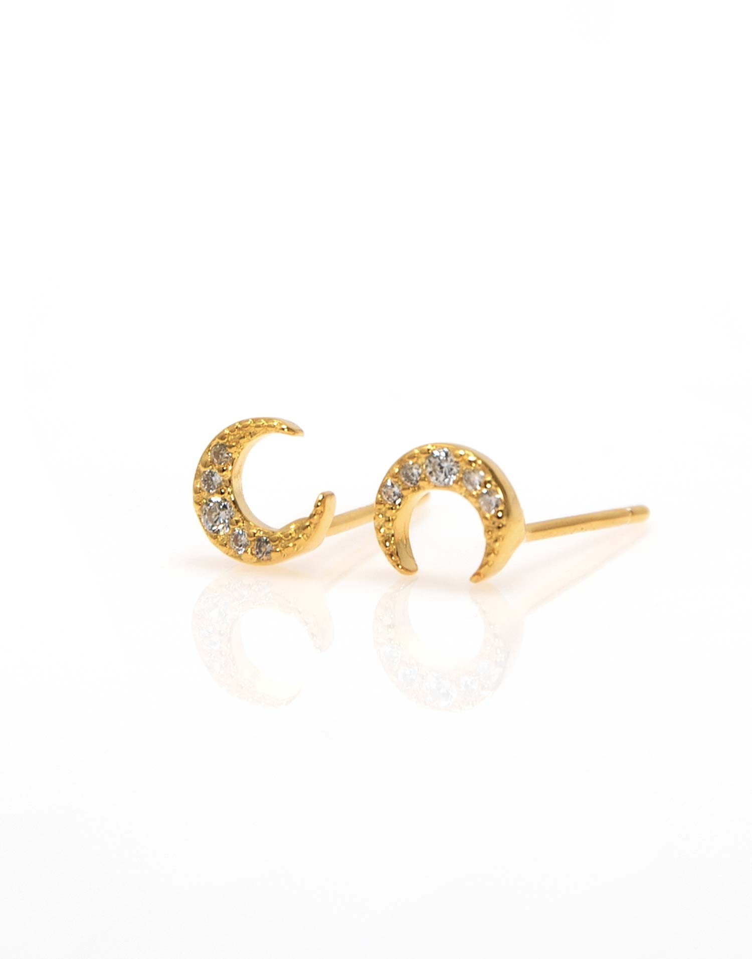 La silueta de luna creciente aporta un toque delicado y sugerente a este diseño. Las pequeñas circonitas que recorren su interior generan un brillo suave que resalta la forma sin perder ligereza visual.