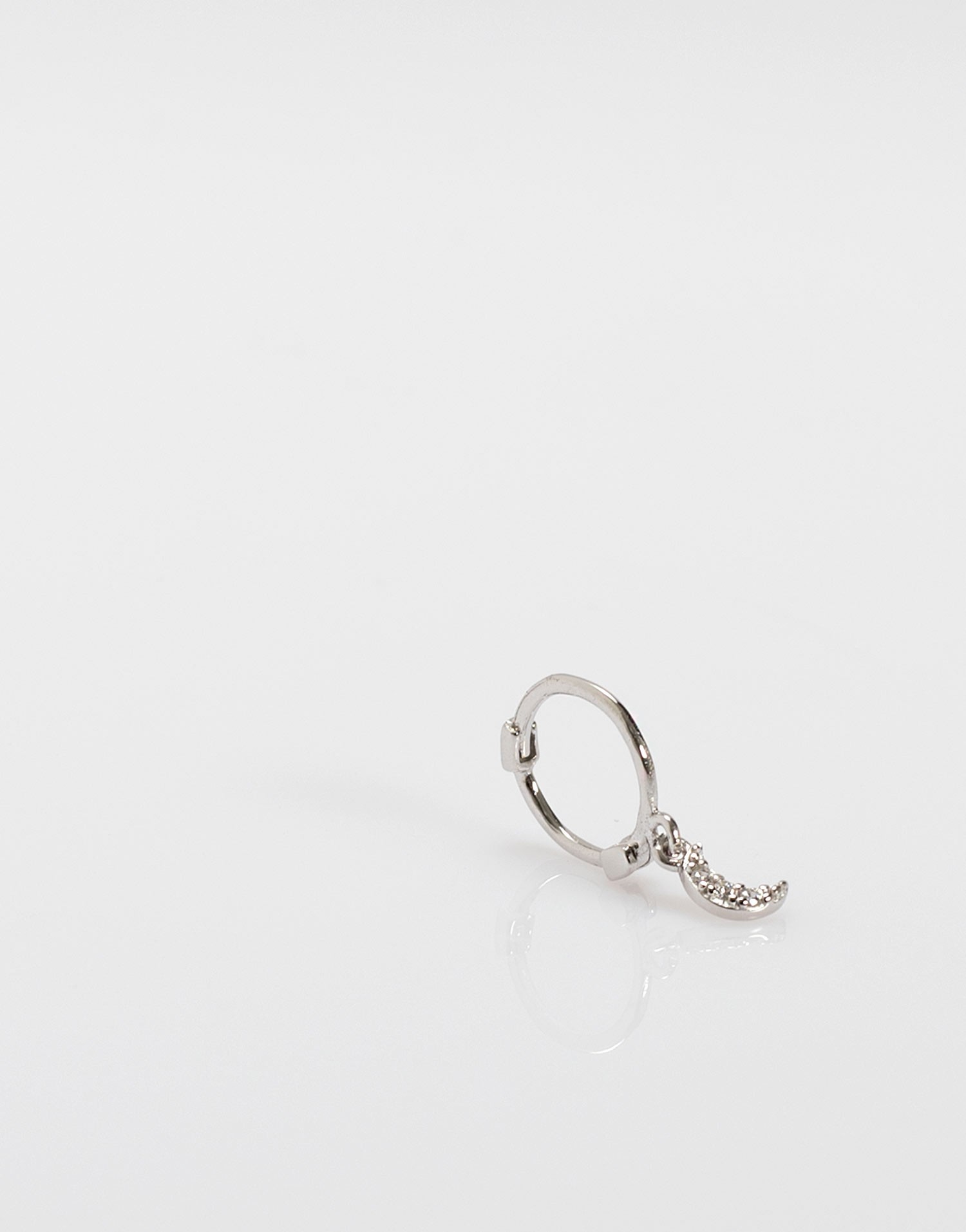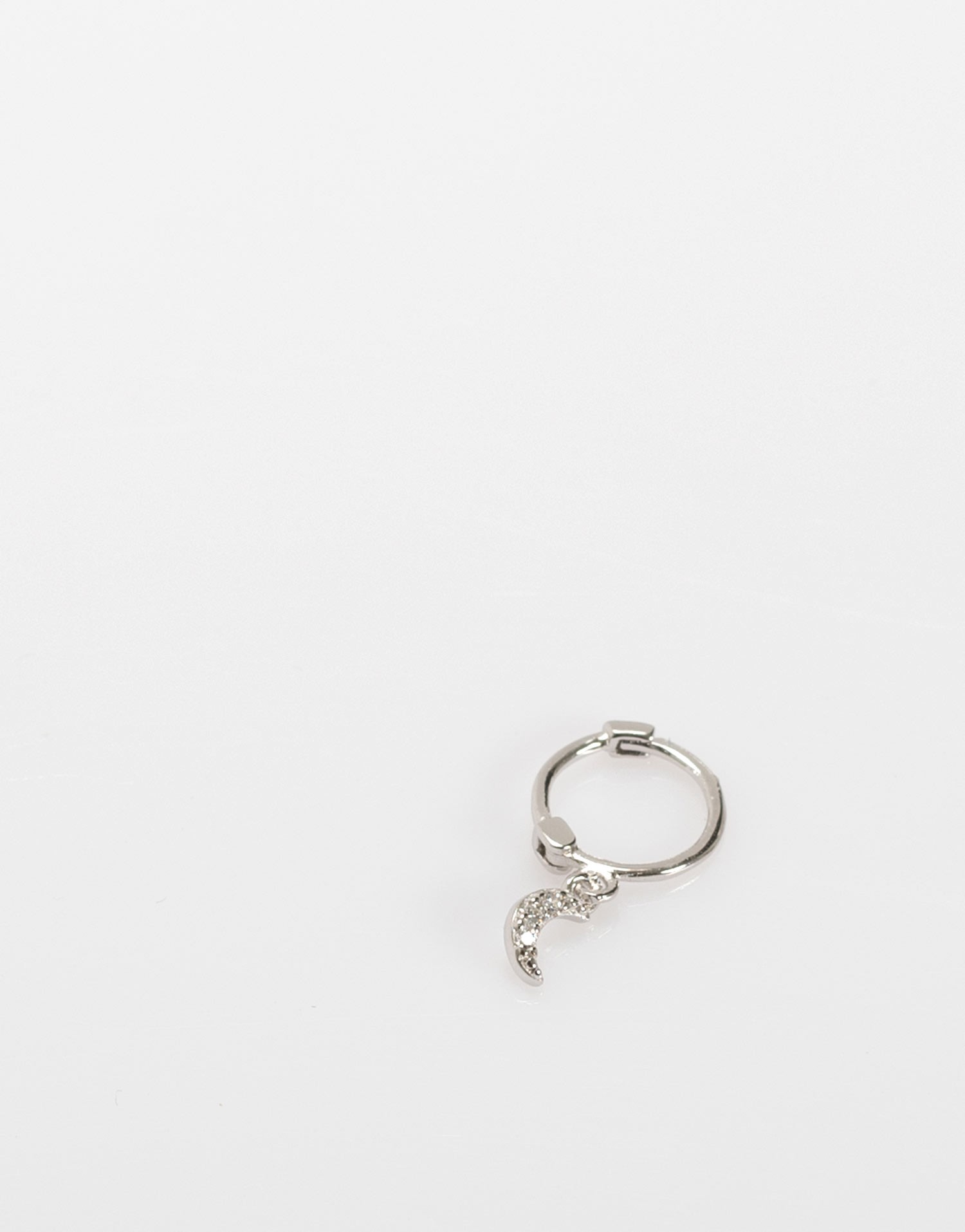 Este aro pequeño de plata 925 combina un diseño minimalista con el encanto simbólico de una luna colgante adornada con circonitas blancas. Una pieza ligera y luminosa que aporta un toque especial sin recargar.